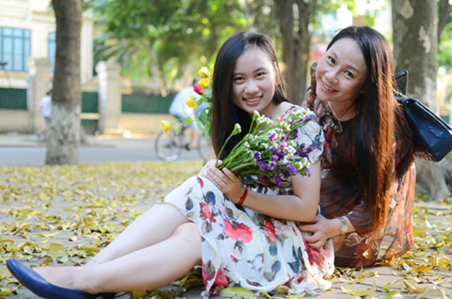 | Nhà văn Hồ Thị Hải Âu - tác giả cuốn sách "Mẹ Việt dạy con bước cùng toàn cầu" và con gái Lã Hồ Minh Khuê giành được học bổng của Trường Đại học Harvard (Mỹ) trị giá 320 ngàn USD. |