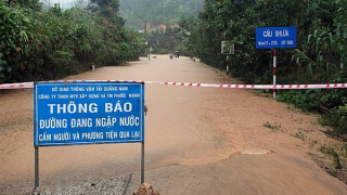 Tại huyện Đại Lộc, mưa lớn, nước lũ dâng cao đã ngập sâu hơn 1m trên tuyến ĐT609 đoạn giáp ranh giữa xã Đại Đồng và xã Đại Lãnh khiến giao thông bị chia cắt. Đáng chú ý, tuyến đường Hồ Chí Minh tại Km 1407 (xã Phước Mỹ, huyện Phước Sơn) đã xảy ra sạt lở đất xuống đường gây tắc đường hoàn toàn.