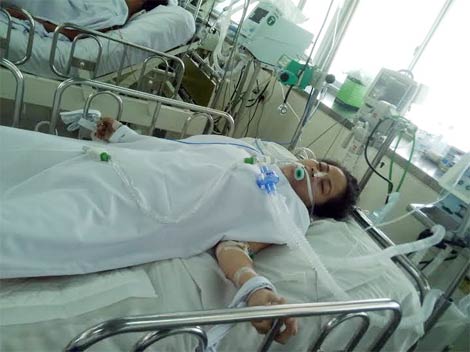| Nạn nhân Huệ Linh vẫn đang được hồi sức tích cực tại bệnh viện Chợ Rẫy. |