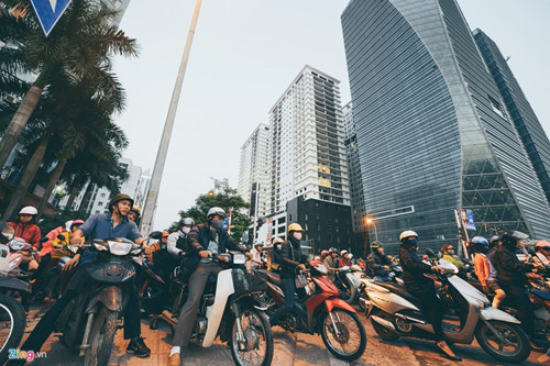 | Nút giao Lê Văn Lương - Hoàng Đạo Thúy (quận Thanh Xuân, Hà Nội) luôn đông đúc xe cộ qua lại, bất kể thời điểm nào. Đây là trục đường có mật độ chung cư nhà cao tầng lớn nhất Hà Nội hiện nay. |