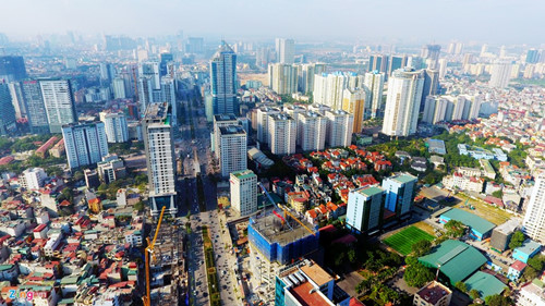 Hàng chục chung cư cao tầng đang mọc lên tạo nguy cơ "bóp nghẹt" trục hướng tâm quan trọng của thủ đô là Tố Hữu - Lê Văn Lương - Láng Hạ (Hà Nội).