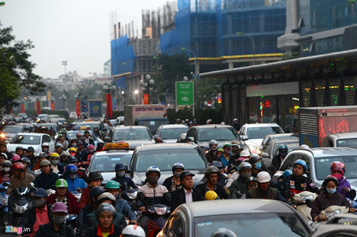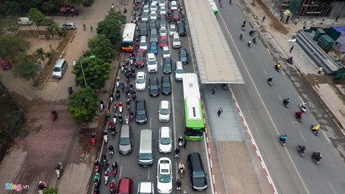 | Mới đây, trục đường này còn hình thành thêm tuyến xe buýt nhanh BRT, mỗi bên bị thu hẹp một phần làn đường. Người tham gia giao thông điều khiển các phương tiện khác càng phải chịu cảnh ách tắc. |