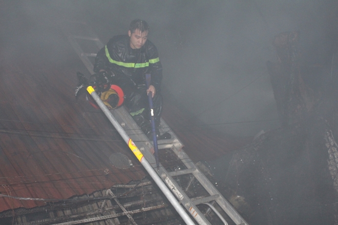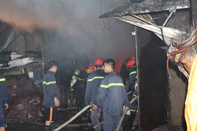Sau 15 phút tích cực phun nước chữa cháy, ngọn lửa đã được khống chế nhưng do bên trong kho phế liệu có nhiều vật liệu dễ cháy như: bìa các-tông, gỗ, vải, nhựa, bình gas… nên khói và khí độc vẫn âm ỉ cháy bên trong, bao trùm lên phần lớn các kho hàng liền kề. Ban Chỉ huy đã chỉ đạo CBCS dùng thang trèo lên mái nhà phá dỡ các cấu kiện xây dựng và tạo các lỗ thoát khói.