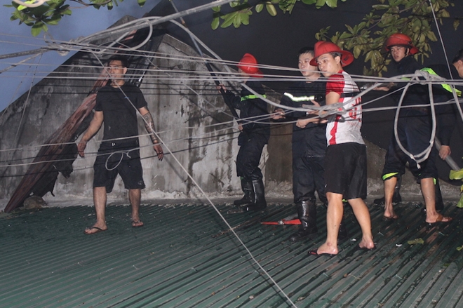 | Tổ công tác tăng cường trèo lên mái nhà tạo lỗ thoát khói |