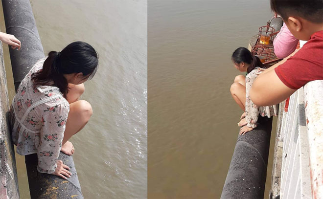 Khoảng 9h15 ngày 5-10, tại nhịp cầu 10 cầu Chương Dương, một phụ nữ bất ngờ trèo qua la can cầu ngồi ôm thành cầu khóc lóc, bỏ lại con nhỏ đứng trên lan can cầu.