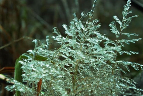 | Những cành cây khẳng khiu phủ đầy băng tuyết trắng xóa. |