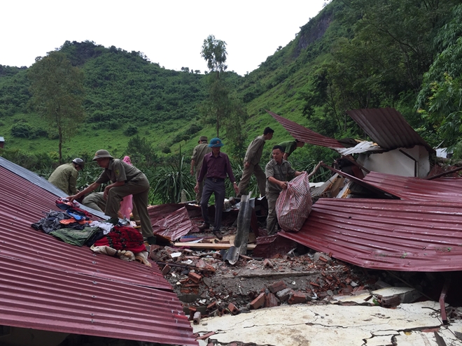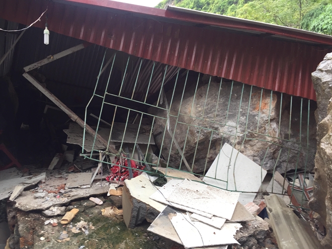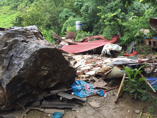Nhiều tảng đá lớn ước tính khoảng hơn 100 khối đồng loạt lăn từ trên núi xuống, phá hủy hoàn toàn ngôi nhà của chị Trần Thị Thơm, 39 tuổi, trú tại tổ 12 phường Quyết Thắng, thành phố Sơn La.