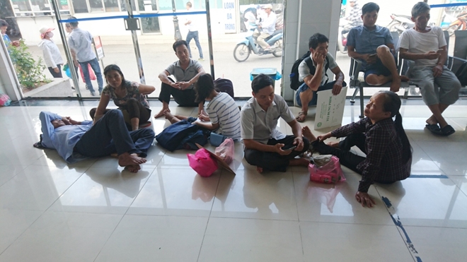 Trong các phòng đăng ký khám tại bệnh viện bệnh nhân cùng người nhà vạ vật chờ đợi tới phiên mình.