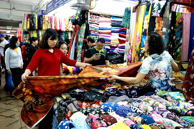 | Cảnh mua bán tấp nập tại chợ Đồng Xuân. |