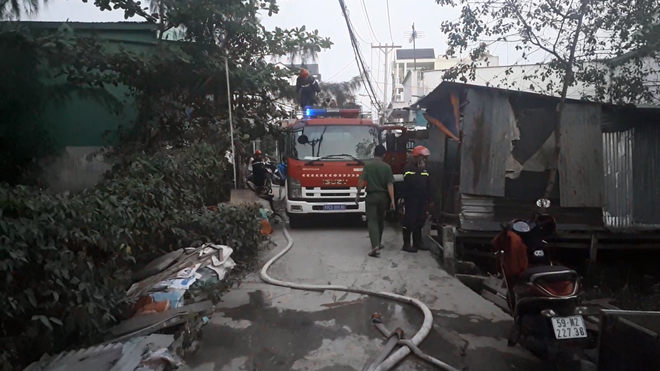 | Cảnh sát PCCC quận 7 huy động 3 xe chữa cháy cùng hàng chục cán bộ chiến sĩ đến ứng cứu dập tắt đám cháy |