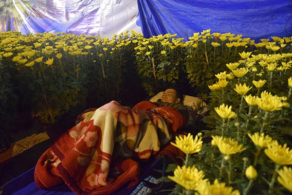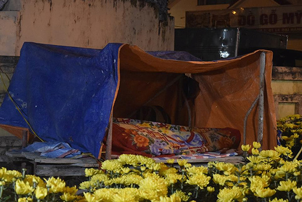 Người bán hoa cảnh tết ở Đà Nẵng với giấc ngủ chập chờn trong giá lạnh.