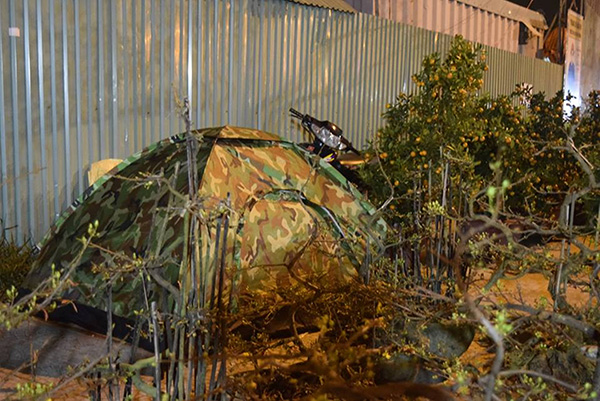 Một người bán mai mang từ Bình Định ra chuẩn bị được lều dã chiến để ngủ.