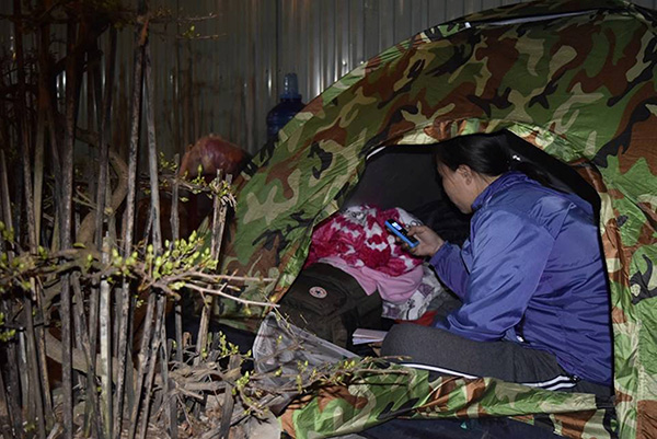 Để bán hoa cảnh tết, tất cả mọi người đều chấp nhận cảnh màn trời chiếu đất trong gió lạnh mùa đông.
