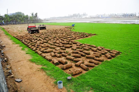 | Đưa cỏ từ vườn ươm sang trồng vào sân golf 18 lỗ. |