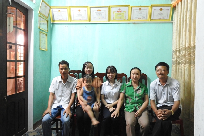 | Em Lý (người thứ ba từ phải sang) cùng bố mẹ và người thân. |