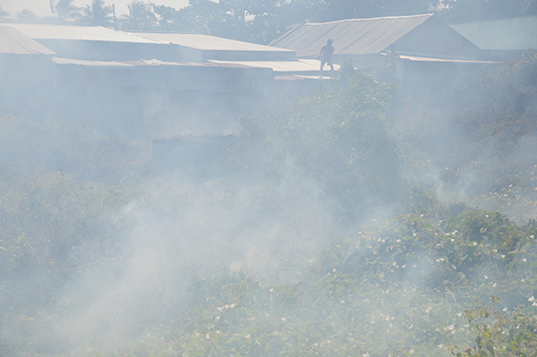 Tại hiện trường, lửa cháy luồn phía dưới, khói dày đặc bốc cao bao trùm khắp một vùng rộng lớn. Theo hướng gió, khói lửa “tiến thẳng” vào khu dân cư gần đó khiến hàng chục hộ dân hoảng loạn. Nhiều người dân dùng vòi nước sinh hoạt để chữa cháy nhưng không khồng chế được.