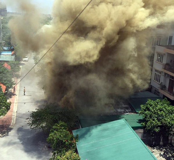 Trong quá trình cháy, có nhiều tiếng nổ phát ra từ bên trong khiến người dân không dám lại gần dập lửa. Khói đen từ đám cháy bốc cao và dày đặc khiến không khí xung quanh trở nên vô cùng ngột ngạt và khó chịu.