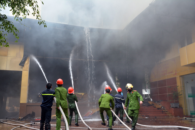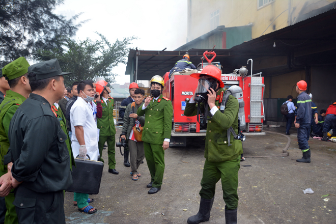 Nhận được tin báo, lực lượng PCCC Nghệ An đã điều động hơn 10 xe chữa cháy đến hiện trường, chia làm 3 tổ để chữa cháy, bao gồm 1 tổ phía ngoài, phía trong và một tổ khẩn trương tìm kiếm cứu người bị mắc kẹt trong đám cháy.