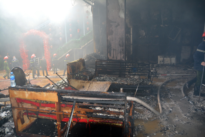Do thiết kế trong các phòng và các vật dụng là đồ dễ cháy nên ngọn lửa bùng phát mạnh, khói bốc cao bao trùm lên các tầng trên. Đến khoảng 11h30, đám cháy vẫn chưa được dập tắt hoàn toàn, khói đen vẫn bao trùm toàn bộ khách sạn. Nhiều xe chữa cháy liên tục được huy động. Các chiến sĩ PCCC cũng được bổ sung đeo mặt nạ khí tìm cách cứu nạn nhân.