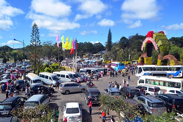 Được nghỉ Tết dương lịch vào ngày thứ 6 kết hợp với hai ngày nghỉ cuối tuần, hàng trăm nghìn du khách đã đổ lên Đà Lạt đi du lịch đầu năm và tham dự sự kiện Festival hoa Đà Lạt lần thứ VI, năm 2015 đang diễn ra.