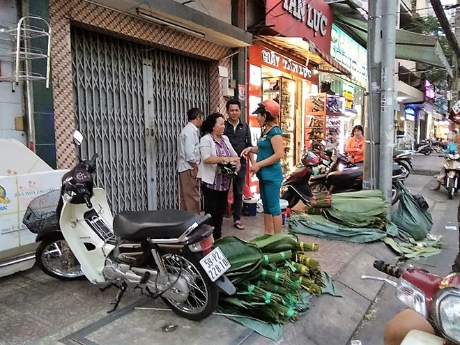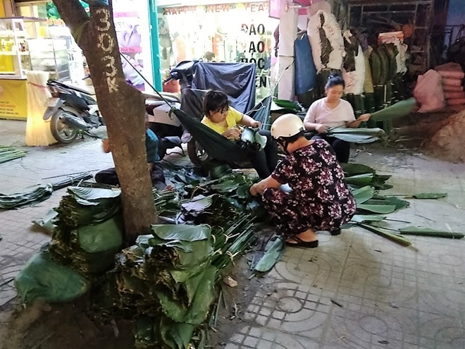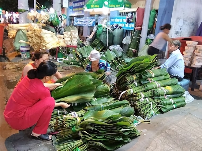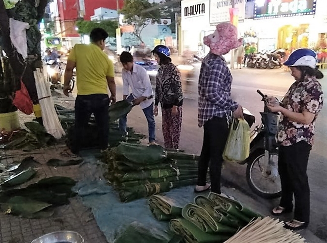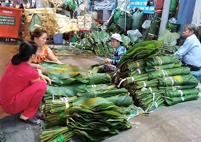 | Đa phần người đến mua lá dong về gói bánh chưng là người gốc bắc sống tại TP Hồ Chí Minh |