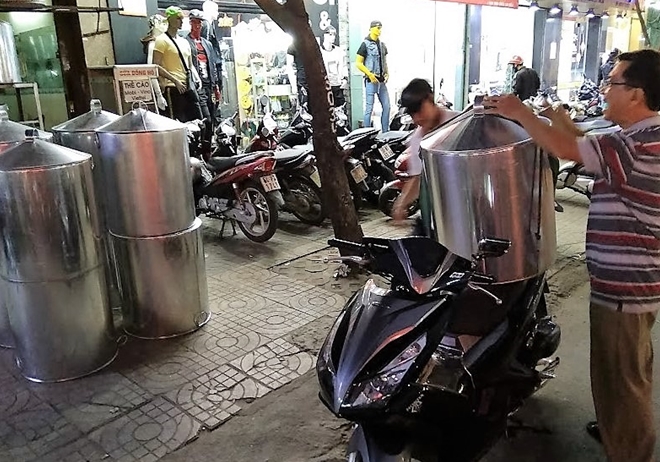 | Tại khu chợ này ngoài lá dong còn có cả các nồi lớn được bán để nấu bánh |
