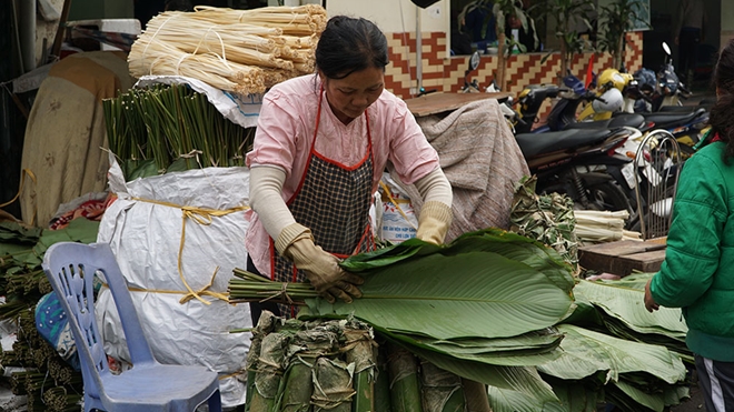 Trong quãng thời gian này, mỗi gian hàng của tiểu thương thường bán được hàng ngàn, thậm chí có hôm đắt khách lên tới hàng chục ngàn chiếc lá dong cùng dây lạt mỗi ngày.Năm nay, theo các tiểu thương tại chợ, chất lượng lá dong khá tốt, mức giá là 80-100 nghìn đồng cho một trăm lá, lá bé già chỉ từ 30-50 nghìn đồng. Lá dong đa số được nhập về từ các tỉnh miền núi phía bắc như Hà Giang, Bắc Kạn….