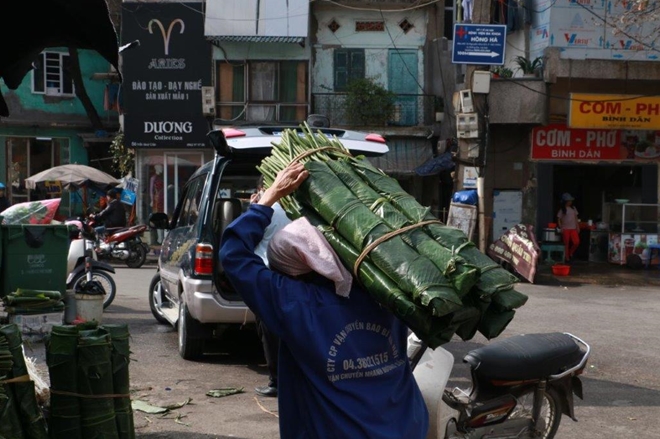 | Lá dong được vận chuyển từ các tỉnh miền núi về Hà Nội. |