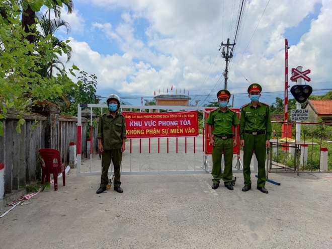 Ngoài ra, huyện Phú Lộc cũng là cửa ngõ phía Nam của tỉnh với hàng chục ngàn phương tiện lưu thông qua đây mỗi ngày nên Công an tỉnh Thừa Thiên-Huế cũng bố trí nhiều chốt kiểm soát phòng, chống dịch để kiểm soát. Giữa cái nắng như đổ lửa, Trung tá Ngô Đức Thành, Trưởng Công an xã Lộc Thủy cùng đồng đội chạy xe máy khẩn trương truy vết các trường hợp có nguy cơ lây nhiễm trên địa bàn. Xong việc, các anh lại trở về bám chốt kiểm soát ở đường rẽ vào Cảng Chân Mây.