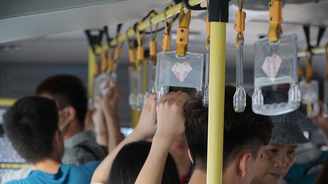 | Ban đầu nhiều hành khách trên xe bus chả mảy may quan tâm đến những chiếc tay cầm đặc biệt đó, sau rồi khi phát hiện ra họ lại thấy lạ, dần dần lại thấy thú vị! |
