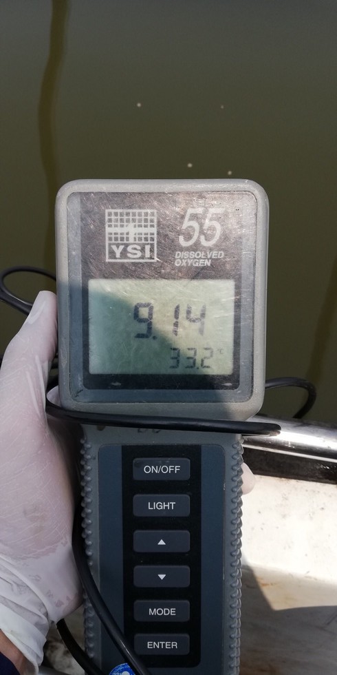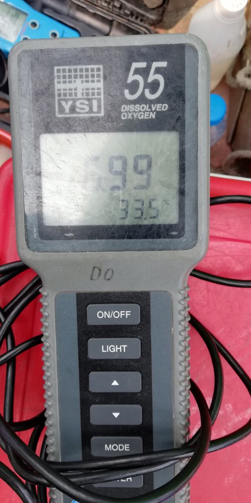 | Bên ngoài khu thí điểm DO=0.59 mg/l. (Đo vào ban đêm). |