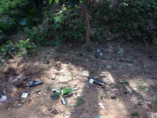 | Một mảnh vỡ của quả đạn pháo tại hiện trường. |