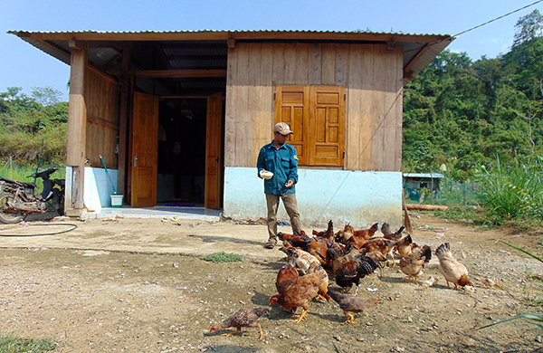 | Anh Arất Bước chăm sóc đàn gà của gia đình. |