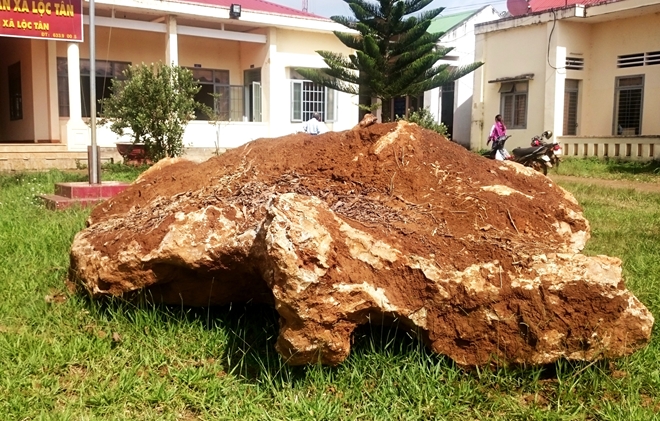 Tuy nhiên, cơ quan chức năng địa phương phát hiện, lập biên bản tạm giữ khối đá, đưa về trụ sở UBND xã Lộc Tân canh giữ.