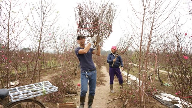 | Các chủ vườn cho biết giá đào dịp Tết Âm lịch có thể tăng cao vì hiện rất nhiều cây không còn ra hoa trong một tháng tới. |