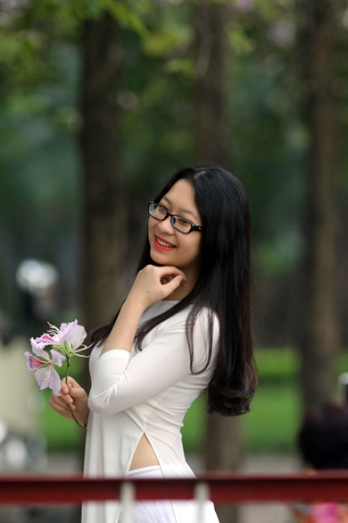 Thiếu nữ Hà thành duyên dáng với sắc tím hoa ban.