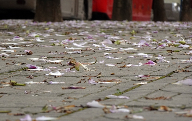 | Những cánh hoa ban rơi phủ kín mặt đường Bắc Sơn. |