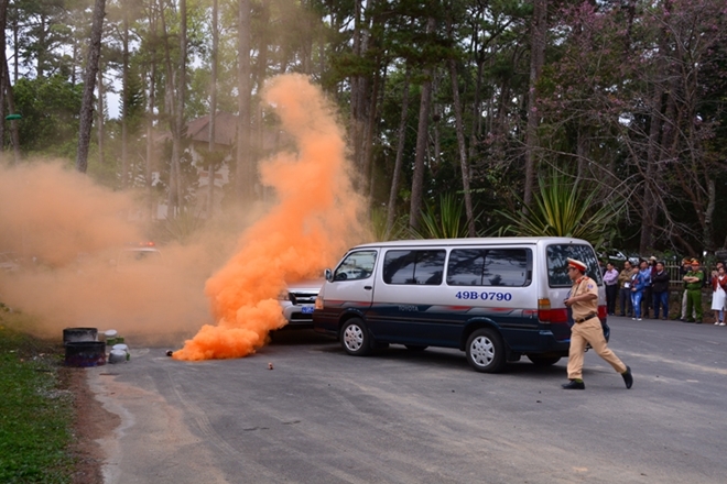 Lực lượng CSGT đã khẩn trương có mặt tại hiện trường, tiến hành phân luồng giao thông, đồng thời cấp báo tới Ban chỉ huy ứng phó sự cố bức xạ và hạt nhân tỉnh Lâm Đồng.