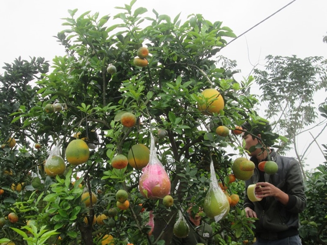Chia sẻ với PV, ông Giáp cho biết: “Để các quả chín cùng lúc vào dịp Tết Nguyên đán, tháng 4 tôi đã bắt đầu ghép quả bưởi. Tháng 5 ghép quả cam, chanh đào và còn lại Phật thủ, quất, quýt được ghép vào tháng 8. Tuy nhiên, để các loại quả sinh trưởng tốt trên cùng một cây, tôi thường chọn gốc cây bưởi đã có tuổi đời trên 1 năm trở nên để ghép quả. Vì, những gốc đó có bộ rễ trùm khỏe, đủ sức nuôi dinh dưỡng cho các quả tốt hơn, quả không bị thiếu chất..”.