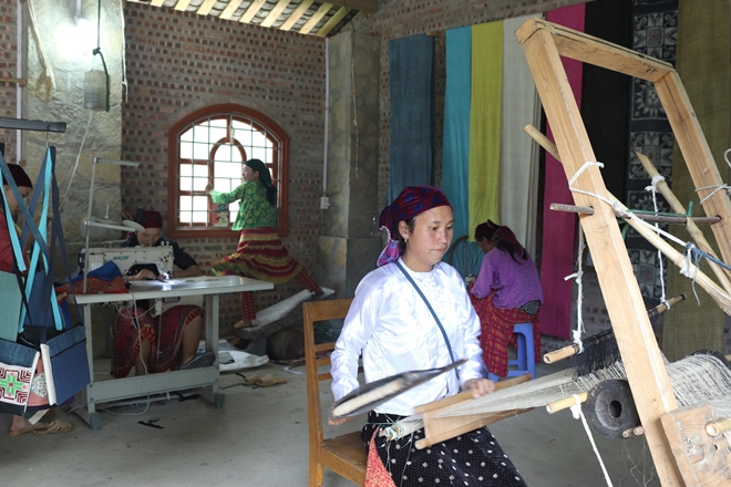 Tự hào giới thiệu về Hợp tác xã (HTX) dịch vụ tổng hợp nông lâm nghiệp thôn Sà Phì A, chị Vàng Thị Cầu, Phó Chủ tịch Hội Liên hiệp Phụ nữ huyện Đồng Văn; người sáng lập, đồng thời là Tổ trưởng Tổ sản xuất của HTX cho biết, thành lập từ tháng 3-2018 chỉ với 10 thành viên, được sự quan tâm của chính quyền huyện Đồng Văn, sau hơn 1 năm, đến nay HTX đã có 20 thành viên với thu nhập ổn định mỗi tháng từ 5 – 6 triệu đồng, tạo công ăn việc làm cho 95 phụ nữ trên toàn huyện Đồng Văn. Sản phẩm chủ yếu được trưng bày tại điểm tham quan Dinh thự Họ Vương và bán cho khách du lịch. Không dừng lại ở đó, hiện nay HTX đã bắt đầu liên kết hợp tác sản xuất với các cơ sở du lịch, thời trang trong nước và xuất sang Canada, Úc, Italia, Nhật Bản... Không chỉ giải quyết việc làm, HTX cũng đã góp phần thay đổi đáng kể nhận thức của người phụ nữ Mông ở Đồng Văn.