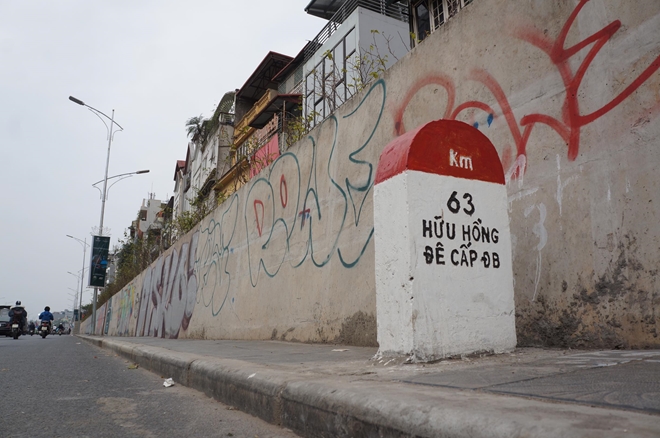 Đường đê Nghi Tàm sau nâng cấp bị Graffiti bôi bẩn