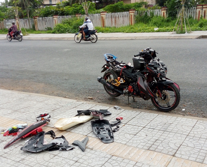 | Cho rằng bạn mượn xe mang đi "luộc" đồ, người chồng phá banh chiếc mô tô trị giá trên 60 triệu ngày ngoài đường. |