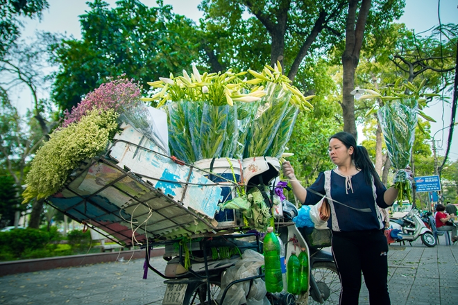 | Gánh hoa rong vẫn hàng ngày rong ruổi khắp phố phường Hà Nội mang cái đẹp tới cho tất cả những ai yêu cái đẹp của loài hoa loa kèn. |