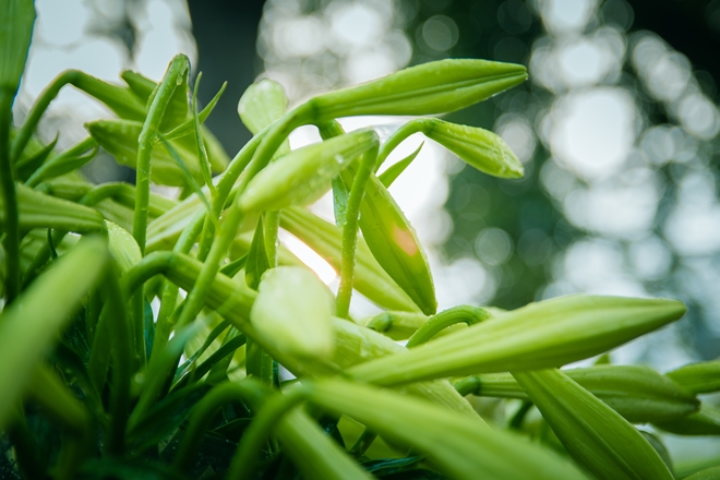Màu trắng tinh là khi hoa đã bung nở, lúc loa kèn vẫn còn chúm chím là một nhành nụ lại có màu xanh nhàn nhạt. Và dù nó trong độ nở nhất, thì những bông loa kèn vẫn có vẻ e thẹn, chỉ xòe phần cánh hoa phía trên, lộ ra những nhụy vàng rực rỡ.