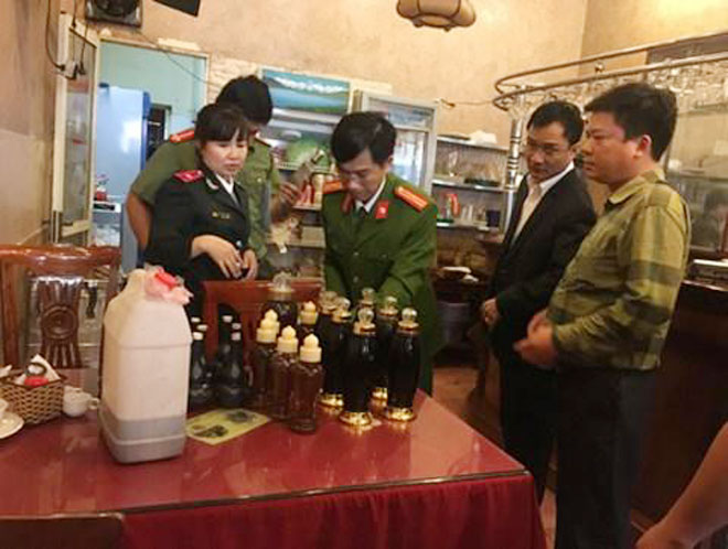 Cũng trong sáng cùng ngày, Đoàn kiểm tra liên ngành thành phố và lãnh đạo quận Cầu Giấy đã kiểm tra đột xuất một số cơ sở kinh doanh, sản xuất rượu, cửa hàng kinh doanh ăn uống trên địa bàn quận. Khi kiểm tra đột xuất nhà hàng gà tươi Mạnh Hoạch tại địa chỉ số 97 phố Trần Duy Hưng, quận Cầu Giấy, đoàn công tác đã phát hiện 11,5 lít rượu ngâm táo mèo và rượu ba kích không nhãn mác.