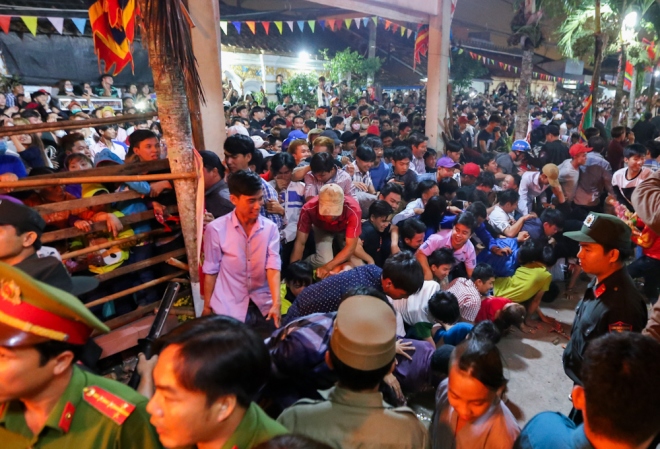 Hàng nghìn người liền cùng nhau xô cửa giàn để tiến vào trong xin lễ.