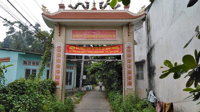 Khi bãi tập kết cạnh đường tỉnh lộ 878, thuộc địa bàn ấp Ngãi Thuận, xã Thân Cửu Nghĩa, huyện Châu Thành (Tiền Giang) có biểu hiện quá tải do nhiều người dân đổ tập trung nơi này nên chính quyền đã đưa bãi rác vào cạnh cổng Đình Thần Cửu Viễn.