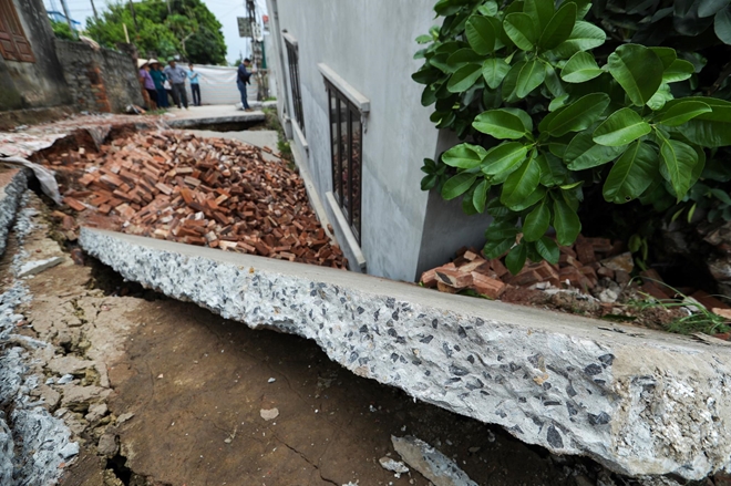 Vụ việc xảy ra vào khoảng 18h ngày 2/7 tại một đoạn đường dài hơn 10m thuộc xã An Tiến, Mỹ Đức (Hà Nội). Hậu quả khiến đường bị sụt lún nghiêm trọng, kéo theo đó là 1 nhà dân bên cạnh cũng bị sập lún theo.