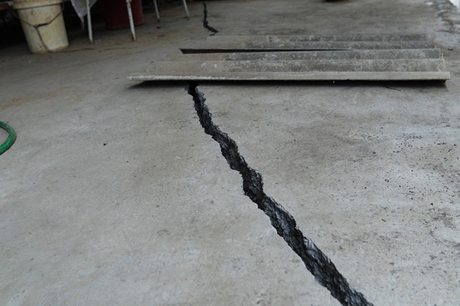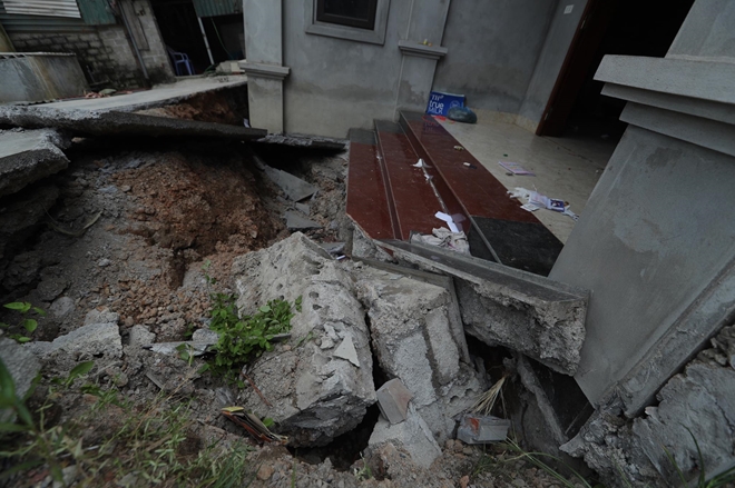 | Các vết nứt xuất hiện xung quanh ngôi nhà. |