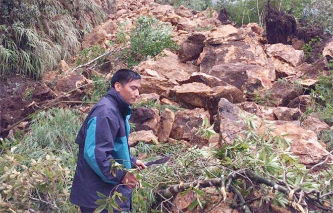 | 2000m³ đất đá sạt lở, gây ách tắc quốc lộ 4D nối Lào Cai – Lai Châu. |